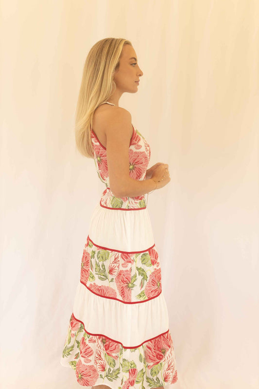 Haven Midi Dress - Ivory/Red