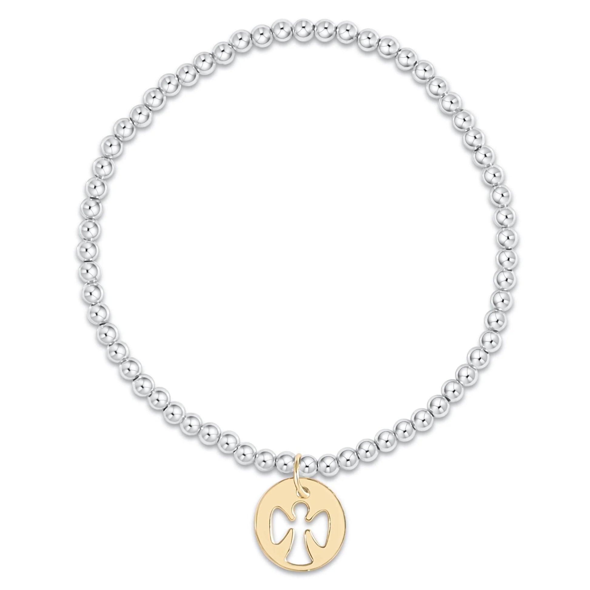 classic sterling mixed metal 3mm bead bracelet - guardian angel gold disc